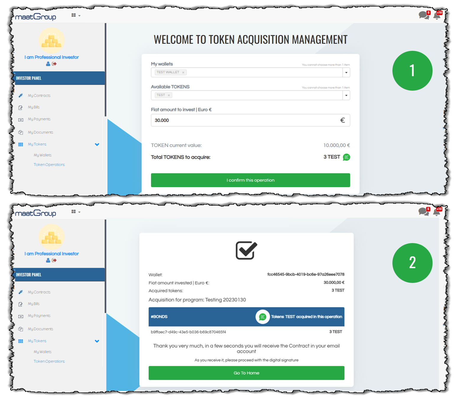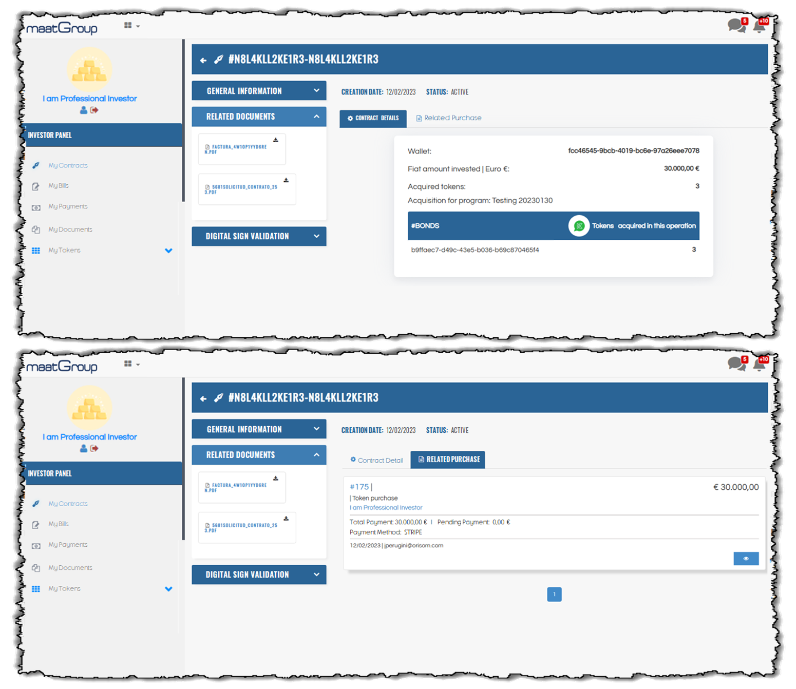 The Investment process is not only secured by the underlying infrastructure, but also, adds a digital signature and a controlled payment procedure that will allow the Investors to manage their operations with full guarantee