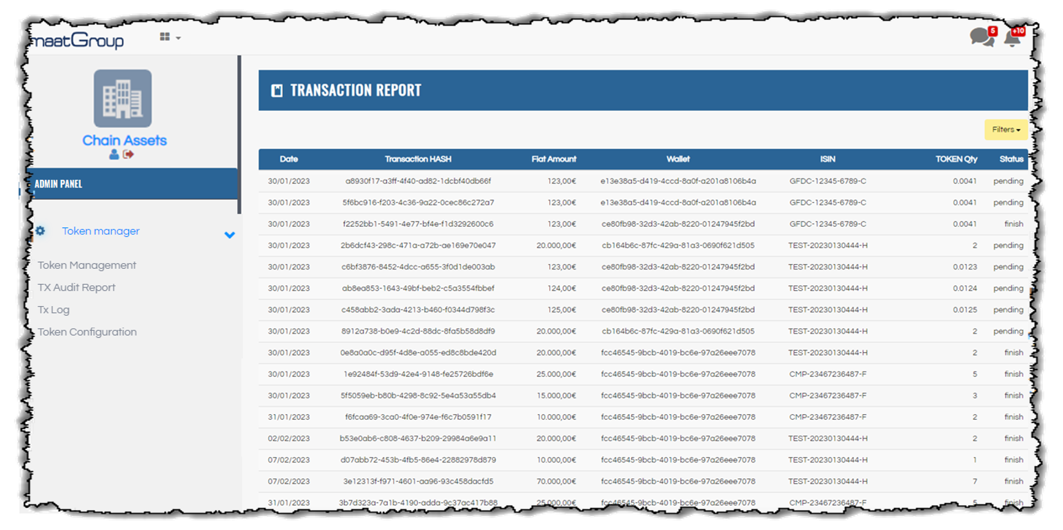Likewise, the Investor will also have available a historical analytical view drill&down kind, where you can analyze the composition of the balance of the selected Token